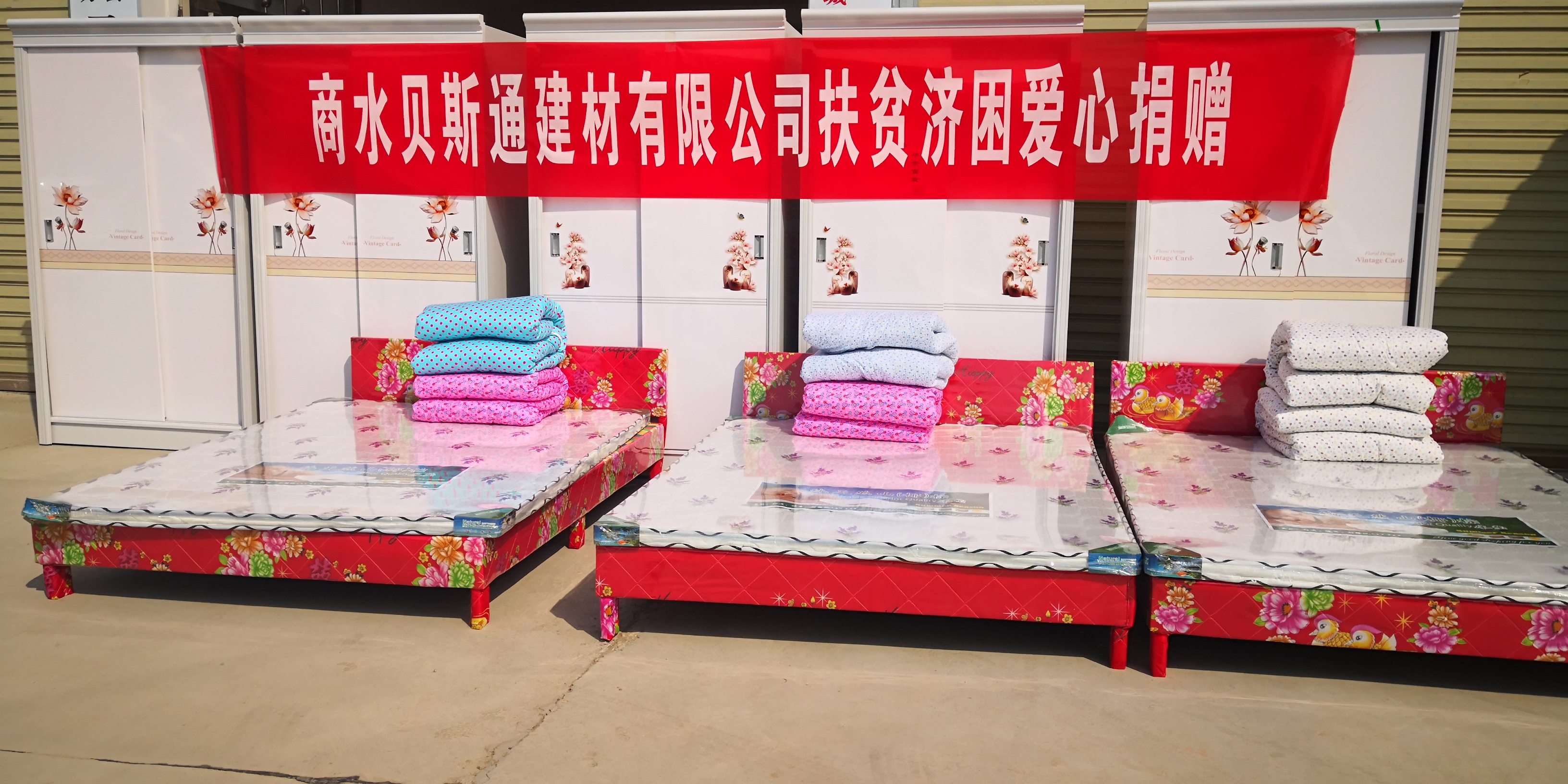 近年來,商水貝斯通建材有限公司在誠信經(jīng)營的同時,積極履行企業(yè)社會責任,踴躍參加“百企幫百村”、慈善捐贈等活動。2017年以來,商水貝斯通建材有限公司每年重大節(jié)日都向馬口村貧困戶捐贈米、面、油、月餅等生活用品;為馬口村村室捐贈了打印機、遠程電視、大理石板材等辦公、生活用品,累計開展捐贈活動10余次,累計捐款捐物20000余元。這次他們又為新城辦馬口村貧困戶現(xiàn)場捐贈價值4000元的衣柜、床、床墊等家居用品。