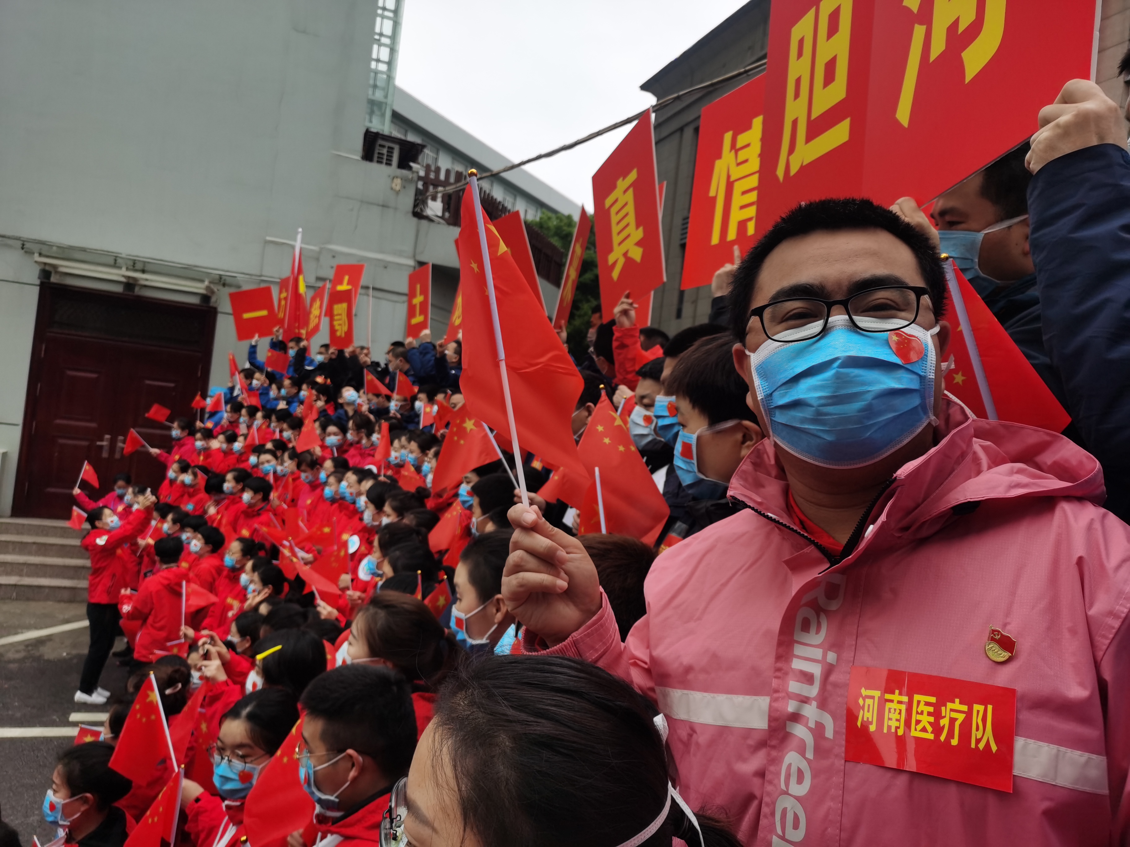 3月30日上午,在完成各自使命之后,按照河南省援鄂醫(yī)療隊(duì)統(tǒng)一安排起程凱旋。湖北街頭萬(wàn)人空巷送英雄,街頭車(chē)輛長(zhǎng)鳴笛,沿街循環(huán)播放紅歌《歌唱祖國(guó)》,勝利的歌聲激蕩勝利的心情。