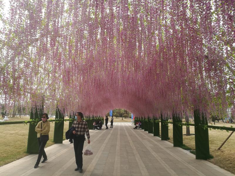 受疫情影響,清明小長(zhǎng)假,不少市民放棄了出行計(jì)劃。周口本地的游園、景點(diǎn)因此很是“火了”一把。近年來(lái),周口城市建設(shè)日新月異,踏青賞花,在家門口就能滿足了。圖為周口某綠色基地節(jié)日?qǐng)鼍啊?記者 李偉 攝