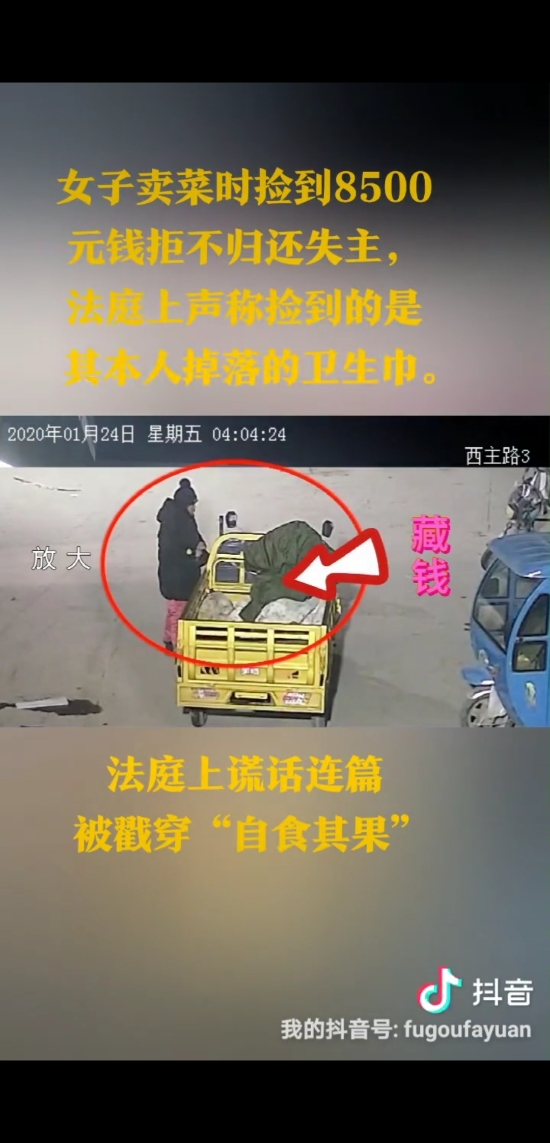 庭審中,面對監(jiān)控錄像顯示楊某彎腰撿拾錢款的畫面,楊某本人百般抵賴、謊話連篇,拒不承認撿到錢款。當法官詢問楊某如何解釋監(jiān)控畫面中顯示其撿到了白色包裹時,楊某居然說是彎腰撿東西了,但撿的不是錢,撿的是她自己的衛(wèi)生巾。法官再次向楊某告知當事人作虛假陳述的后果及應當承擔的法律責任,楊某仍一口咬定撿到的不是錢,撿的是衛(wèi)生巾。法官遂傳喚現場目擊證人出庭作證,兩名證人依法進行了法庭宣誓,明確表示見到了楊某撿起地上一包錢并放入其本人包中的行為。此時,原告又提交了一份錄音證據,法官予以當庭播放。錄音清晰顯示,楊某在電話中曾經承認1月24日早上撿到錢款的行為。