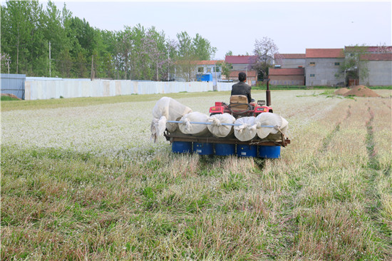4月15日,河南省鹿邑縣谷陽辦事處張辛行政村五里廟自然村種植的近百畝蒲公英進入種子收獲期,該村黨支部書記張正濤及時組織人力,在做好疫情防控的同時,抓緊時機進行采收。除種植蒲公英外,該村還引導農(nóng)戶開展葡萄、草莓等果蔬種植、牡丹、艾草等中藥材種殖,希望通過特色種植讓村民在家門口實現(xiàn)就業(yè)增收,帶動貧困九日早日脫貧致富。(記者 李瑞才 攝)