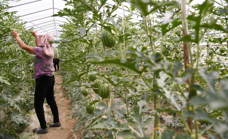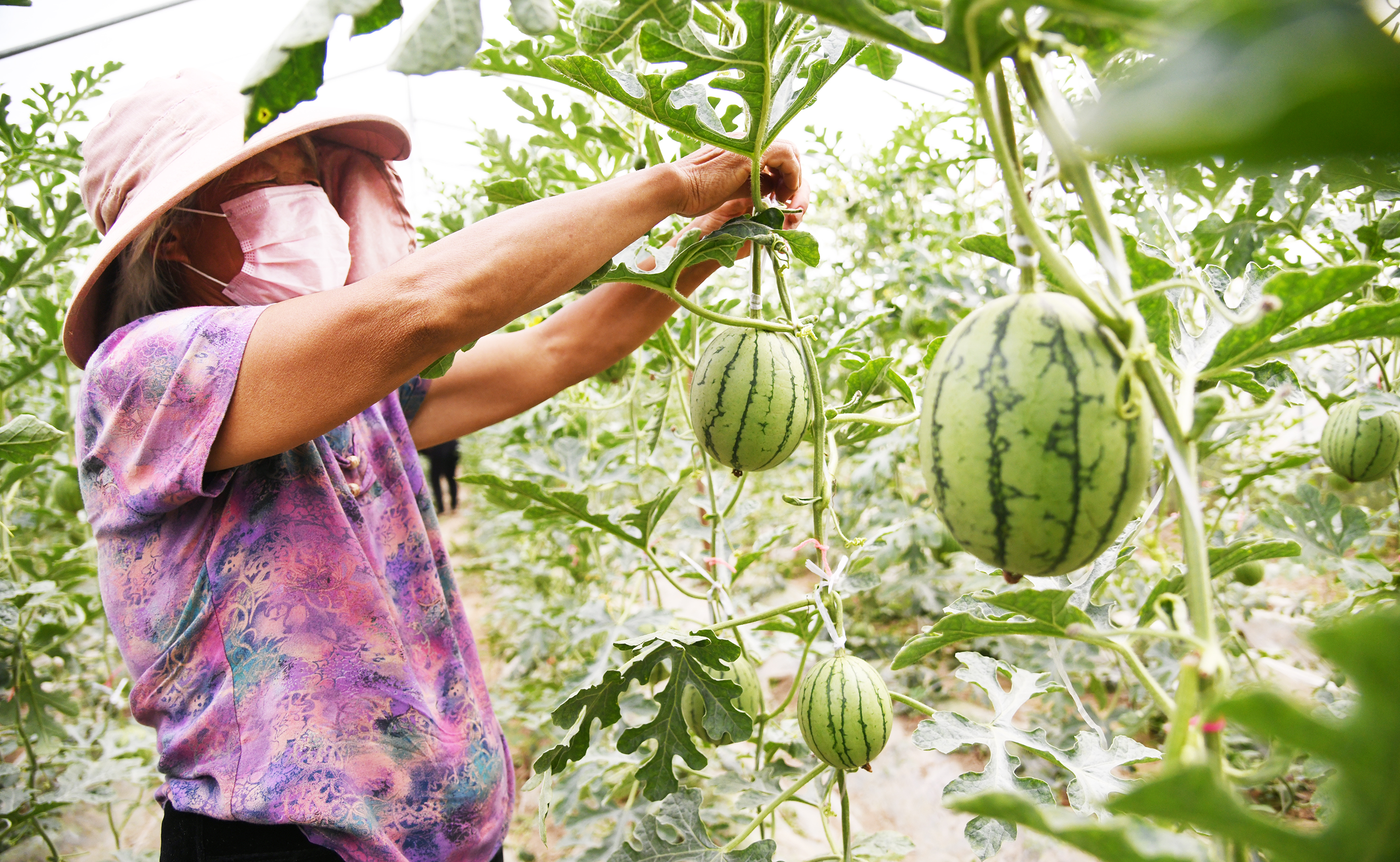 西華遲營鄉(xiāng)百農(nóng)園產(chǎn)業(yè)扶貧基地內(nèi)的西瓜