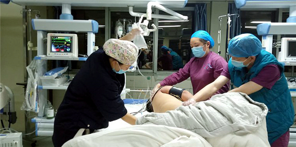 急救迅速展開。6時13分,急救車到達醫(yī)院急救中心。救援現(xiàn)場,有著豐富急救經(jīng)驗的董建洲醫(yī)生判斷患者為重度有機磷農(nóng)藥中毒且伴有呼吸衰竭癥狀。經(jīng)過一個多小時搶救,患者血壓出現(xiàn)平穩(wěn),但呼吸仍然困難,隨時有生命危險。