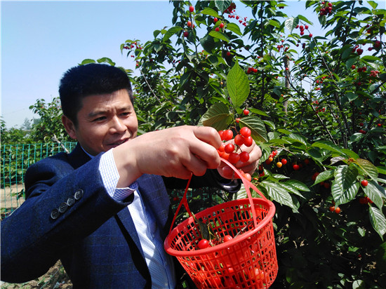 春夏之交,素有“鮮果第一枝”的櫻桃掛滿枝頭。盛產櫻桃的淮陽豆門鄉(xiāng)武灣村第一屆櫻桃采摘節(jié)于4月25日開幕 ,為期半個月的“武灣快樂鄉(xiāng)村游”活動由此拉開大幕。這里,近千畝果園里人頭攢動,櫻桃映紅了村民和游客們的笑臉。