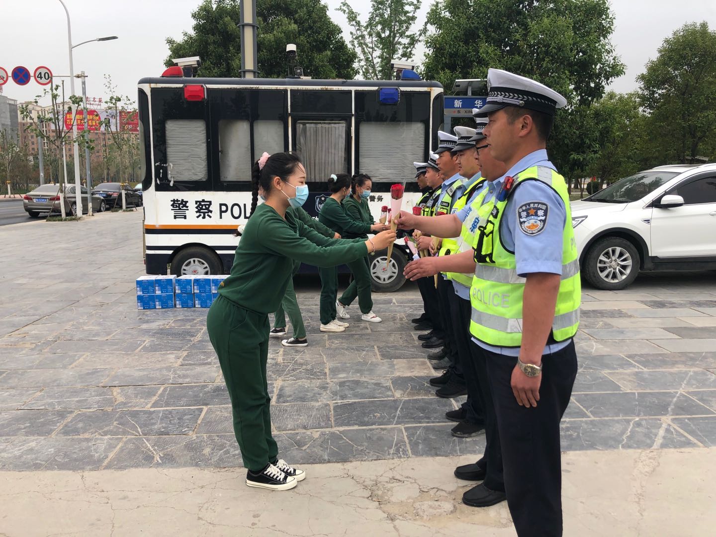慰問(wèn)期間,教師們?yōu)楦兄x鄲城交警辛勤的付出,為他們送上錦旗、鮮花和自編的舞蹈,充分表達(dá)對(duì)一線(xiàn)執(zhí)勤交警堅(jiān)守崗位、不辭勞苦、敬業(yè)奉獻(xiàn)精神的敬意。