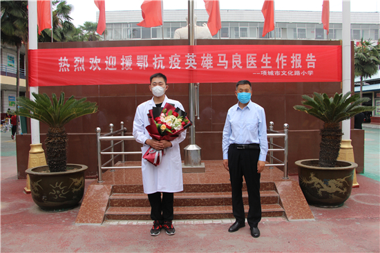 據(jù)了解,馬良醫(yī)生是項城市文化路小學(xué)畢業(yè)的優(yōu)秀學(xué)子,是一名剛參加工作不久的90后醫(yī)生,是我省第十一批援鄂醫(yī)療隊隊員。他用樸實的語言講述了他們請纓戰(zhàn)“疫”的初心和經(jīng)歷。他是家中獨子,但他更是一名醫(yī)生,在危難面前,他勇敢地擔(dān)當(dāng)起醫(yī)生的職責(zé)。在湖北黃陂,他穿著厚厚的防護服每天至少要工作12個小時,要克服常人難以體會的各種困難。雖然身心疲憊,但看到患者從重癥到輕癥再到治愈出院,內(nèi)心感到無比的欣慰和滿足。沒有華麗的語言,沒有激昂的口號,但字字句句卻感人肺腑,展現(xiàn)了援鄂隊員們在沒有硝煙的戰(zhàn)場上,與時間賽跑,與病魔較量,救死扶傷、無私奉獻、大愛無疆的職業(yè)道德和崇高精神。老師們倍受鼓舞,決心立足崗位、再創(chuàng)佳績;學(xué)生們深受教育,立志奮發(fā)向上、成才報國。