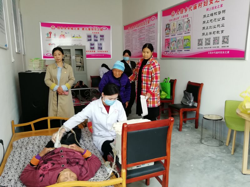 在代廟村黨員活動室,區(qū)婦聯(lián)工作隊(duì)與高齡母親們歡聚一堂,婦聯(lián)主席張健代表駐村工作隊(duì)向高齡母親致以節(jié)日的問候和美好的祝福,她說,一個家庭的幸福離不開母親的辛苦操勞,特別是這些高齡母親,經(jīng)歷了艱苦的歲月,為子女和家庭披星戴月、受盡磨難,因積勞成疾造成晚年的行動不便。區(qū)婦聯(lián)特意邀請大連鄉(xiāng)衛(wèi)生院的醫(yī)務(wù)人員來村里的婦女之家為高齡母親進(jìn)行測血糖、量血壓、做B超、做心電圖、號脈問診,用精湛的醫(yī)術(shù)為大家送上健康的關(guān)懷,確保讓母親們度過一個愉快的節(jié)日。