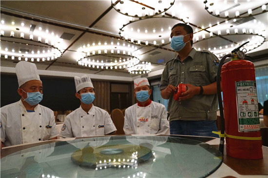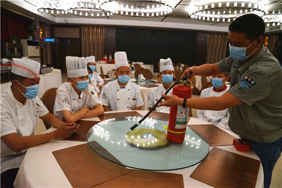 夏季來臨,消防安全成為大家關(guān)注的焦點,為了消除隱患,防止安全事故發(fā)生,6月3日,周口飯店精心組織管理人員和員工開展消防應急演練,提升消防應急處置能力,預防各種事故發(fā)生。當天,來自該飯店餐飲部及客房部40余名工作人員參加了演練。(記者 金月全 攝)