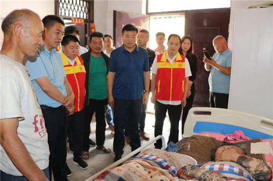 又到了“三夏”麥?zhǔn)占荆w志發(fā)在搶收搶種的同時(shí),還要照顧患病的妻子,他一人能否忙顧過(guò)來(lái)?4日上午,太康縣網(wǎng)信辦主任張照營(yíng)、縣好人協(xié)會(huì)會(huì)長(zhǎng)王勇、秘書(shū)長(zhǎng)朱業(yè)德、中國(guó)好人、河南省四通鍋爐有限公司董事長(zhǎng)馮坤等一行9人,帶著米面油等慰問(wèn)品來(lái)到趙志發(fā)的家里。漂亮的磚瓦房,整潔的庭院,院子中石榴樹(shù)、核桃樹(shù)與一側(cè)種植的豆角、西紅柿等蔬菜高低輝映。處處顯示著主人的勤勞與干凈。“每次來(lái)都給俺帶禮品?,F(xiàn)在家里啥都不缺了?!睆闹驹刚呤掷锝舆^(guò)慰問(wèn)品,趙志發(fā)笑呵呵地對(duì)張照營(yíng)等人說(shuō)。