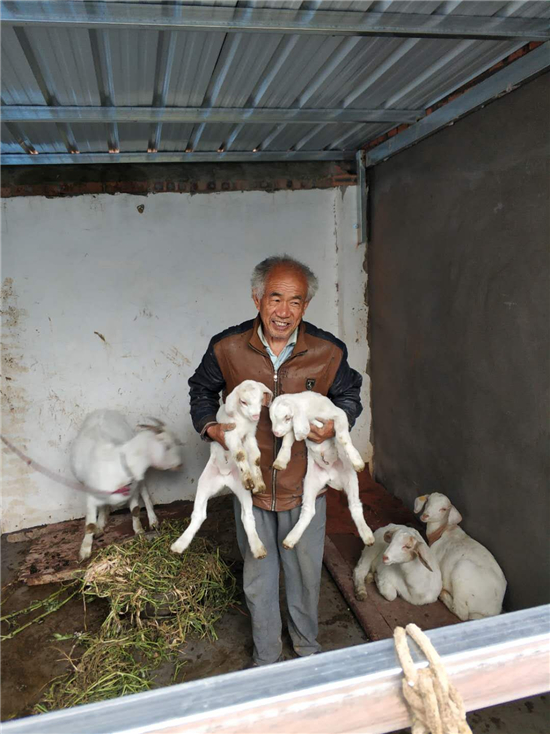 捐贈的綿羊下了崽,毛立明臉上樂開了花。