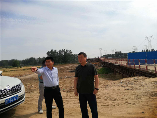 在省道216沙潁河大橋項(xiàng)目處,齊長軍了解了工程建設(shè)進(jìn)度。齊長軍指出,沙潁河?xùn)|新大橋的建成,利于豆門群眾出行和經(jīng)濟(jì)社會(huì)發(fā)展,要為項(xiàng)目建設(shè)營造良好的施工環(huán)境。
