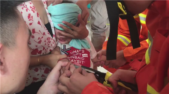 6月8日,鄲城消防救援大隊(duì)接到群眾報(bào)警稱虎崗鄉(xiāng)郭集村顧莊2歲小男孩因?yàn)樨澩媸种副讳摴芴鬃∪〔幌聛恚埱髱椭?。接到?bào)警后,鄲城縣消防救援大隊(duì)立即出動2輛消防車10名指戰(zhàn)員前往處置。