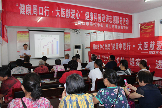 6月11日下午,周口市中心醫(yī)院內(nèi)分泌科主任楊東輝、健康促進辦公室主任范桂麗帶領(lǐng)健康巡講志愿服務(wù)隊來到慶豐社區(qū),為廣大居民開展“糖尿病如何科學(xué)防治”科普講座。