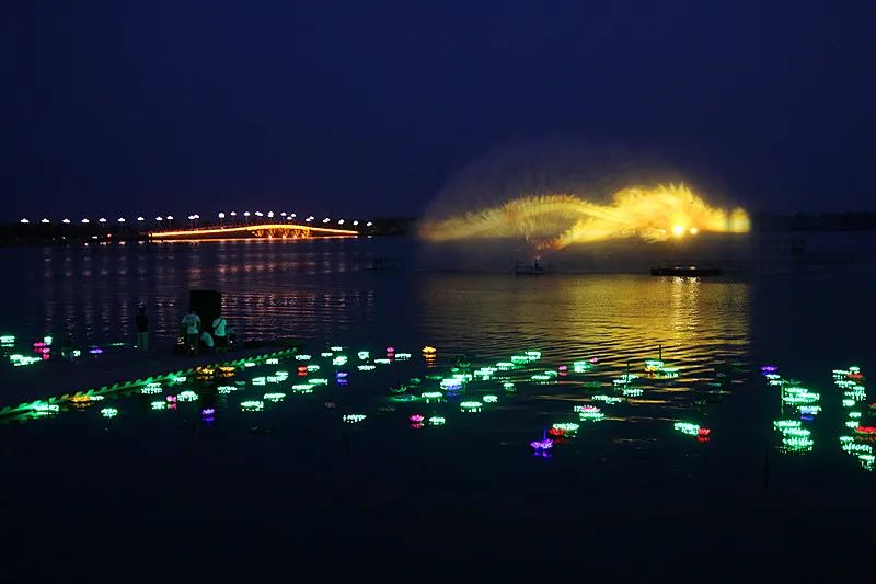 隨后,各位領導和嘉賓及數(shù)以千計的群眾觀看了精彩的文藝演出和流光溢彩、聲光兼具的全息水幕燈光秀。