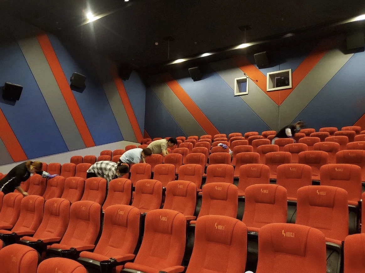 “停業(yè)六個月,終于等來了即將開門的喜訊?!苯ㄐ侣芬患矣俺枪ぷ魅藛T說。由于防疫需要,自1月24日以來,一直處于停業(yè)狀態(tài)。7月20日上午,記者來到影院看到工作人員正在對觀影設備進行檢測、調試,并對影廳、公共區(qū)域等處進行深度防潮防霉、消毒工作,以安全整潔的環(huán)境迎接影院重開。