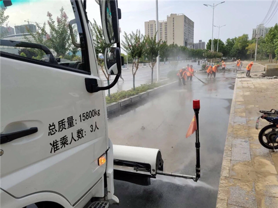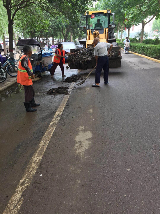 強(qiáng)降雨過后,道路泥沙沉積嚴(yán)重。開發(fā)區(qū)公用事業(yè)管理中心迅速行動,組織環(huán)衛(wèi)工人,出動高壓清洗車、灑水車、洗掃車等作業(yè)車輛,對道路進(jìn)行機(jī)械化聯(lián)合清洗、清掃工作。