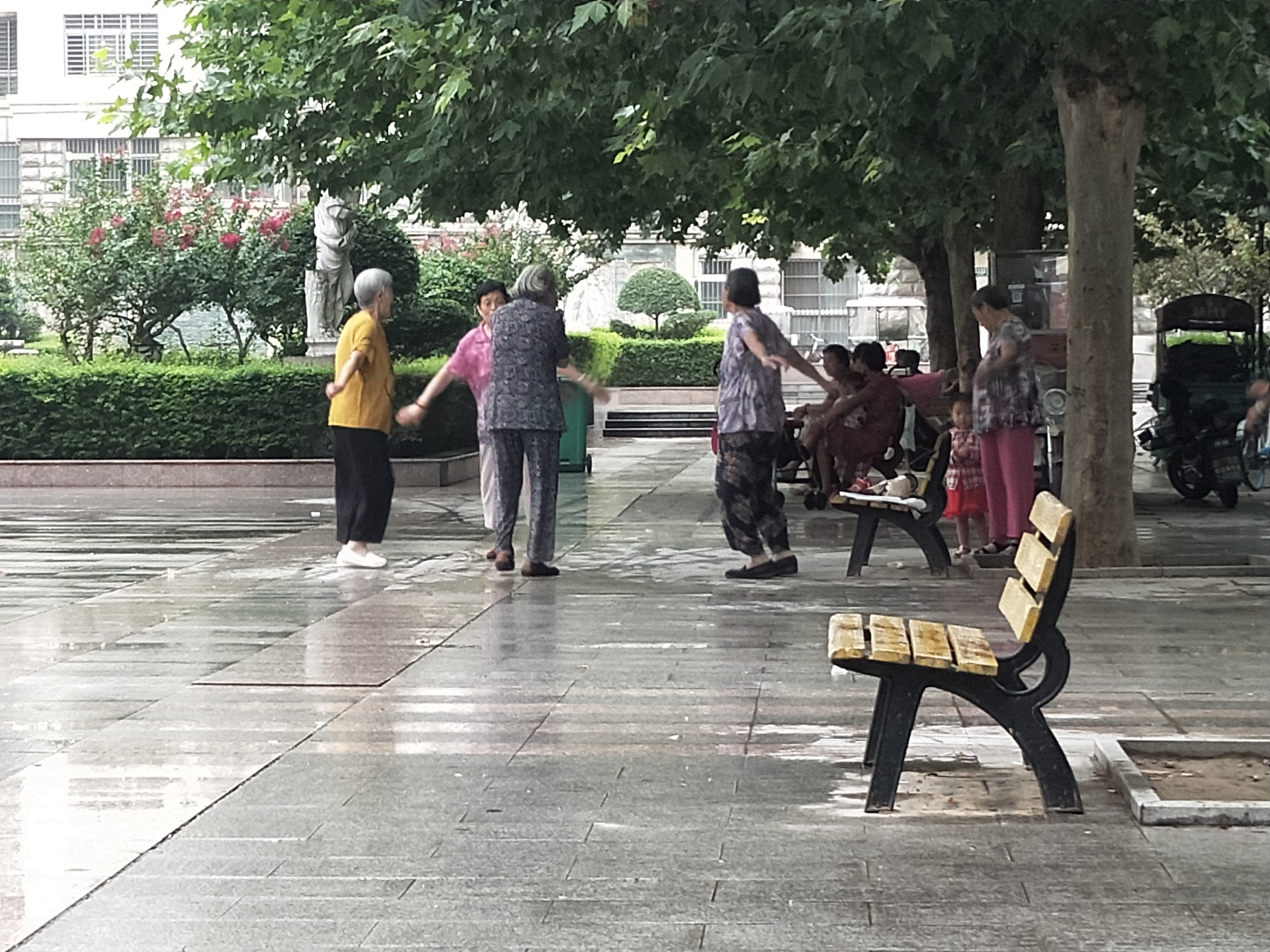 上午8點,天空隱約下著小雨,記者在北門小區(qū)廣場的噴泉旁邊轉轉。幾位70多歲的老人坐在排椅上,音響里傳來很大的戲曲聲回蕩在廣場上?!白疃鄷r有十幾個人吧,每天早上8點左右開始做操,音響聲音調得比較大,我家恰好就在這噴泉廣場西邊,在家里聽得很清楚?!崩钆恐v,由于工作原因,她經(jīng)常上夜班,想睡個好覺也不能如愿,她也向物業(yè)反映過,可是一直沒有什么效果。
