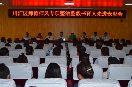 川匯區(qū)教體局領(lǐng)導班子成員,局機關(guān)各股室負責人,區(qū)直各學校(幼兒園)、中心校、民辦中小學及局屬二級機構(gòu)班子成員,受表彰教師共計200余人參加會議。