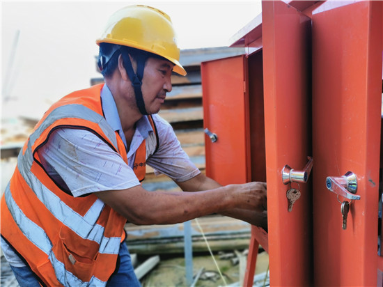 夏日豫東,驕陽(yáng)似火。8月3日,在中交二航局沈丘沙潁河航道升級(jí)改造工程節(jié)制閘施工現(xiàn)場(chǎng),工人們頂烈日,戰(zhàn)酷暑,趕工期,力爭(zhēng)早日打通水上交通大動(dòng)脈,助力周口“滿城文化半城水,內(nèi)聯(lián)外通達(dá)江?!敝性鄢墙ㄔO(shè)。圖為工人們?cè)谝韷﹁徝?、閘堆鋼筋綁扎。