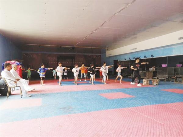 8月3日下午3時(shí),在太康縣張集鎮(zhèn)蔣堂行政村武館,孩子們?cè)诮叹毜膸ьI(lǐng)下,正在練習(xí)民間武術(shù)大洪拳的基本功(如圖)。這些孩子大的十三四歲,小的才五六歲,“嗨哈”之聲不絕于耳。