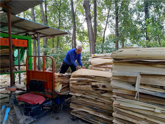 8月28日,商水縣練集鎮(zhèn)馬莊村的四紅木業(yè)有限公司板材加工車間內(nèi),機(jī)器轟鳴,工人忙著斷木、打圓、卷板,一張張板材被切割后,拉到曬板場晾曬?!坝辛诉@份收入,去年全家脫貧摘帽?!闭谲囬g里搬運(yùn)板材的馬莊村貧困戶王天林對記者說。