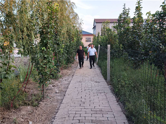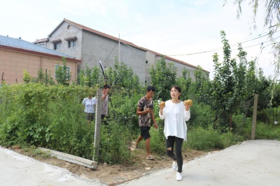 上任伊始,許天勇充分利用水域面積大的優(yōu)勢,發(fā)展鄉(xiāng)村旅游經(jīng)濟,把整理出來的水域種上了荷花,放上了魚苗,在村里還建起了四橦民宿建筑,在廣場邊村里統(tǒng)一管理的一處民宿內(nèi)興辦了特色餐飲,讓來這里垂釣的人有得玩、有得吃、還有得住。許天勇指著許莊村頭的一處坑塘說:“這是我們治理出來比較大的一處,鎮(zhèn)里牽頭在坑塘兩側(cè)建起了扶貧富民冷庫,還建成1200多平方米的游園、近3000平方米的垂釣園,另外,村里又把平整出14.2畝土地種上的梨樹,承包給村民進行果蔬間作,現(xiàn)在梨樹已進入盛果期,預(yù)計今年凈收益4萬元左右?!?/p>