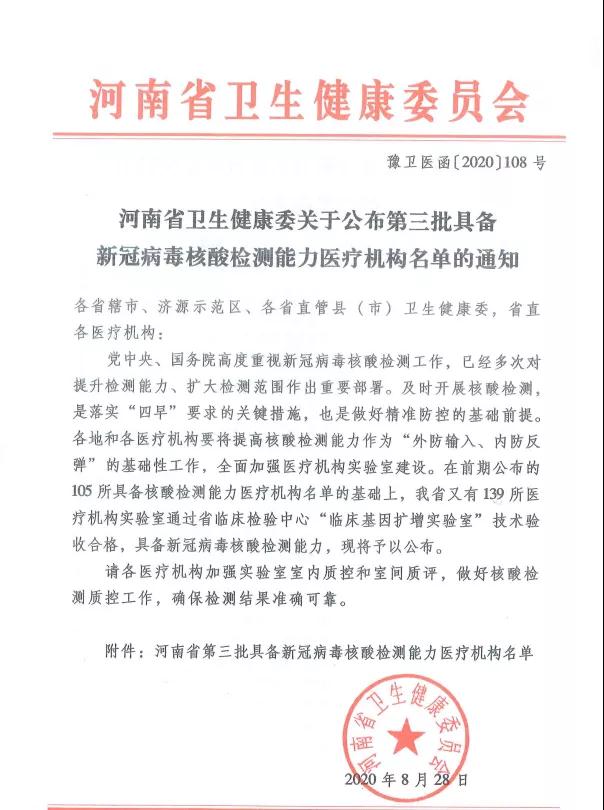 近日,鄲城縣婦幼保健院PCR核酸檢測實驗室通過了河南省臨床檢驗中心的室間質(zhì)量評價和實驗室二級生物安全備案,已具備新冠病毒核酸檢測能力,可承擔(dān)新冠病毒核酸檢測工作。目前,各高校正在陸續(xù)開學(xué),但新冠疫情仍未完全控制,按照疫情防控要求,報到學(xué)生需進(jìn)行一次核酸檢測,持報告單入學(xué)報到。鄲城縣婦幼保健院作為河南省衛(wèi)生健康委員會批準(zhǔn)的新冠核酸檢測機構(gòu),積極承擔(dān)社會責(zé)任,按照“應(yīng)檢盡檢,愿檢盡檢”的原則,已經(jīng)于2020年9月1日起正式開展新冠病毒核酸檢測工作,希望廣大學(xué)子及有檢測需要的人員,本著對自己負(fù)責(zé)、對家庭負(fù)責(zé)、對社會負(fù)責(zé)的原則,積極檢測,為疫情防控工作貢獻(xiàn)力量。