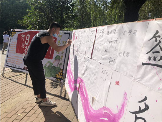 記者在河南科技職業(yè)大學(xué)看到,學(xué)校團委組織各學(xué)院團總支開展“銘記九一八勿忘國恥”主題團日活動,各級團組織通過主題教育班會、簽名儀式等活動重溫“九一八”歷史事件。河南科技職業(yè)大學(xué)團委副書記劉曉娜表示,通過回顧這段歷史,同學(xué)們深刻體悟到了中華民族曾經(jīng)經(jīng)受的苦難和今天幸福生活的來之不易,以此激發(fā)同學(xué)們的責(zé)任感和愛國熱情,進一步增強青年學(xué)子們的愛國主義意識,讓大家銘記歷史,不忘初心、牢記使命,堅定青年發(fā)奮圖強的理想信念,為實現(xiàn)中華民族偉大復(fù)興的中國夢貢獻青春力量。