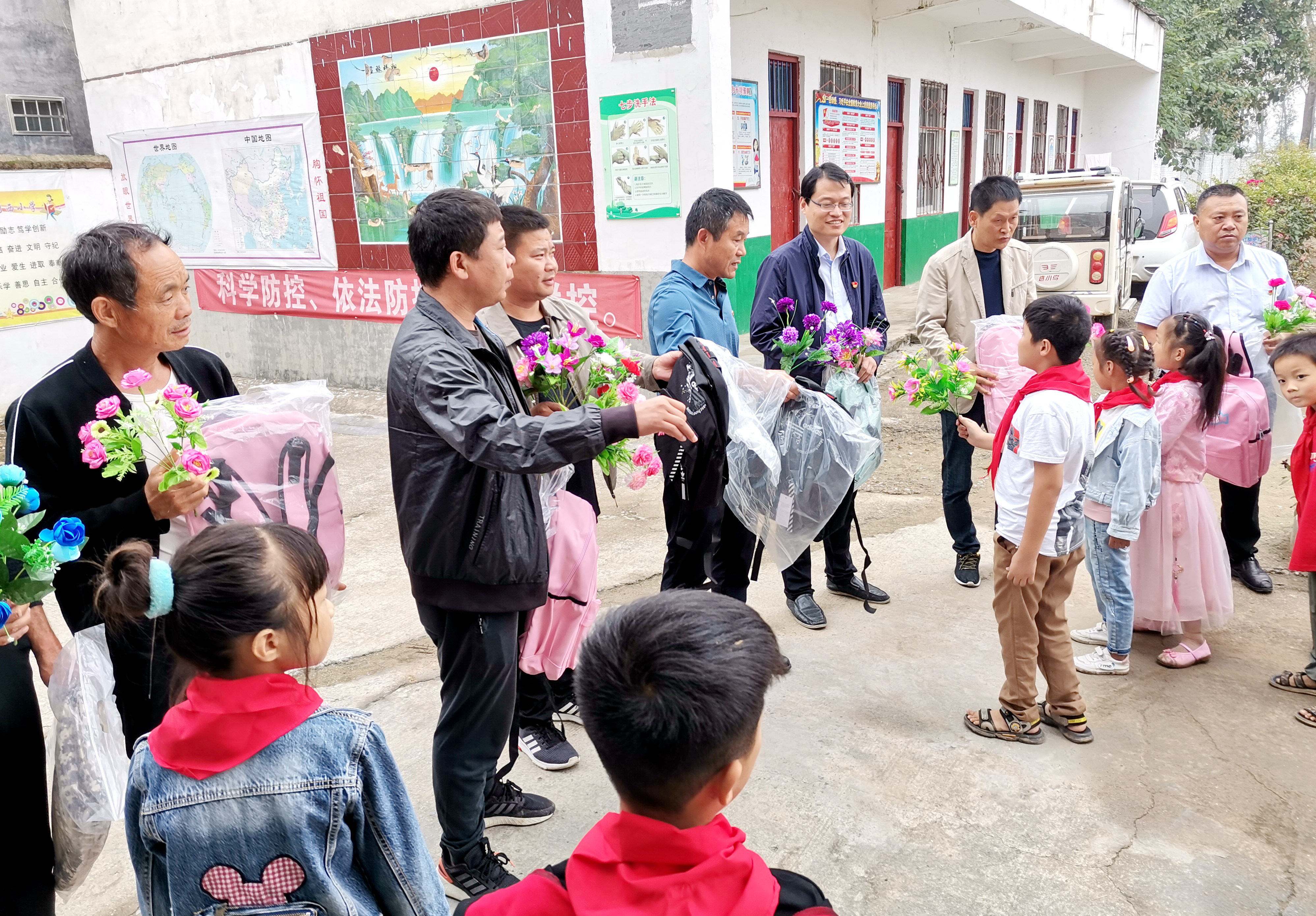 活動中,該公司有關(guān)負責(zé)人分別帶隊前住逍遙鎮(zhèn)周莊村小學(xué)、中心小學(xué)等3所學(xué)校,為貧困學(xué)子送上書包、文具等120余套學(xué)習(xí)用品?!斑@個書包真漂亮,還有漂亮的文具盒,我非常喜歡,謝謝叔叔!”西華縣逍遙鎮(zhèn)周莊村小學(xué)學(xué)生小玉高興地說。