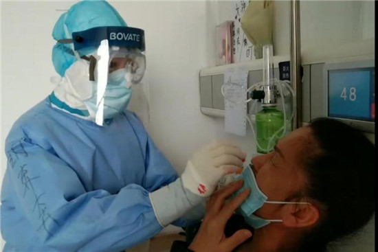 眾所周知,采集咽拭子、鼻咽拭子標(biāo)本是非常危險(xiǎn)的易感染密切接觸行為,同時對患者來說也非常不適。在病區(qū)采集時,胡奔奔總是動作輕柔,邊采集邊輕聲安撫患者,緩解患者緊張情緒。而不少患者因?yàn)楦袘延诤急嫉南ば恼疹櫍偸菑?qiáng)行壓抑著自己的癥狀,盡量不發(fā)出咳嗽,避免對胡奔奔造成更大危險(xiǎn)。