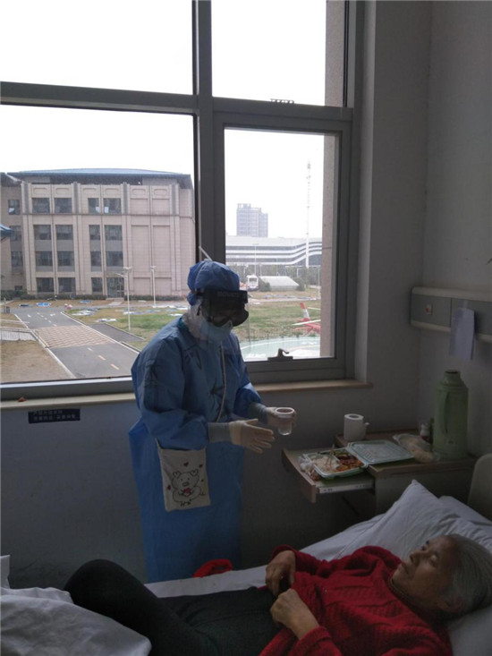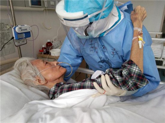 今年74歲的李秀紅,不僅感染新冠肺炎,而且罹患老年癡呆,生活需要時時照顧,而且剛?cè)朐簳r,對陌生環(huán)境的恐懼造成她心情壓抑,天天不說話,時不時落淚。為了讓老人放下心理包袱,胡奔奔在進(jìn)行哄喂吃飯、服藥等正常護(hù)理之余,經(jīng)常陪老人聊天、唱歌,后來老人情緒明顯好轉(zhuǎn),還主動與胡奔奔一起扭起了舞蹈。后來,老人康復(fù)出院時,雖然無言 卻一直緊緊抓著胡奔奔的手久久不愿放開。胡奔奔說,那一刻,她落淚了,但心里確實(shí)說不出的高興。