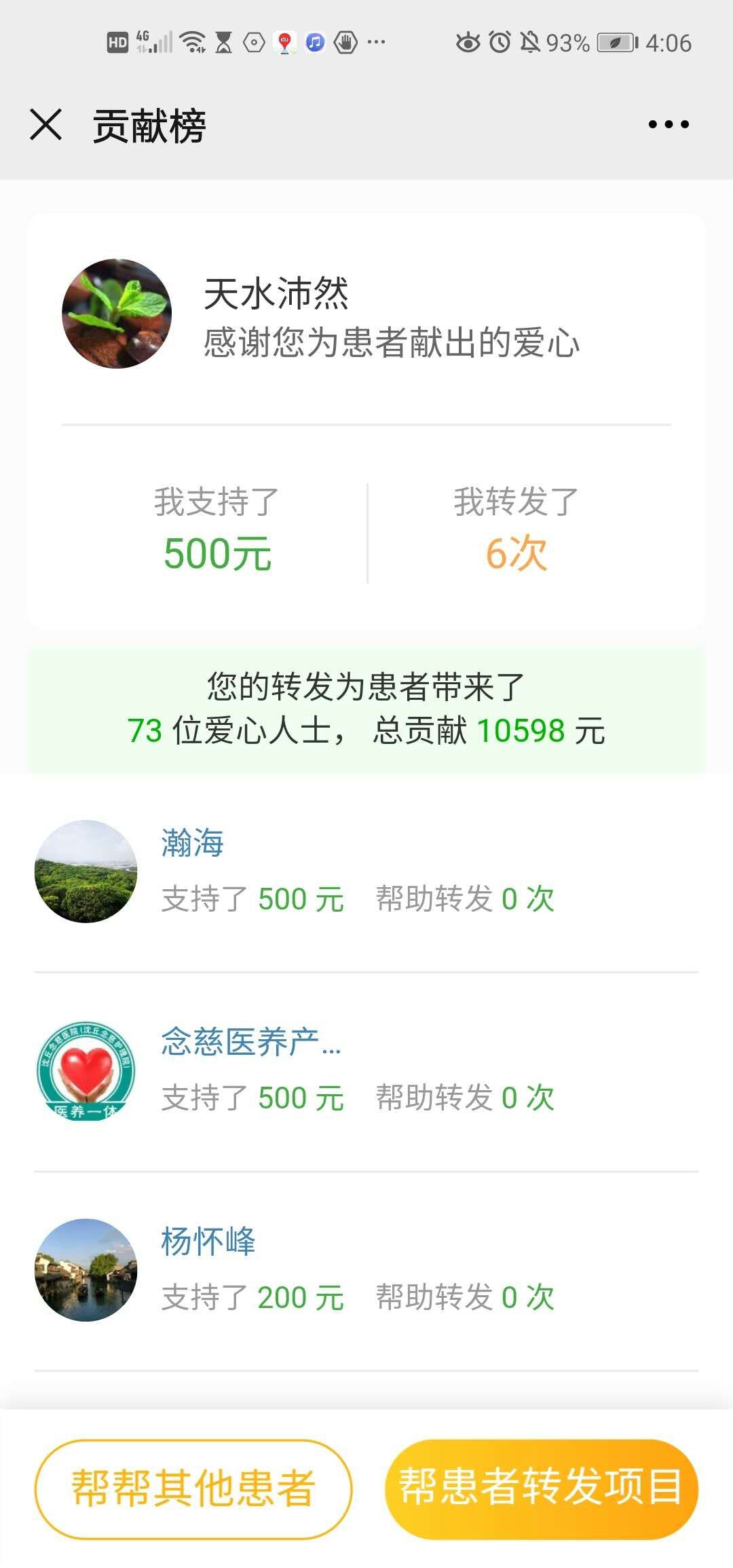 為盡快籌措治療費用,一家人商量后于9月22日在網(wǎng)絡(luò)平臺發(fā)起“輕松籌“,截至10月13日已籌得十萬余元,幫助次數(shù)2547次,省市周口籍人大代表、政協(xié)委員、企業(yè)家、原西華師范畢業(yè)的師生、小罐茶老總杜國楹等愛心人士紛紛捐款。他在西華二高就讀時,教他英語的謝老師當(dāng)即借出兩萬塊錢給孩子治病。劉亞隆從小學(xué)到高中的同學(xué)和老師都發(fā)來問候,有錢出錢,有力出力?!昂⒆訌男【拖矚g幫助同學(xué),老師們都知道,這次生病牽動著他們的心,說句心里話他們對亞隆的幫助令我很感動?!眮喡“职终f。