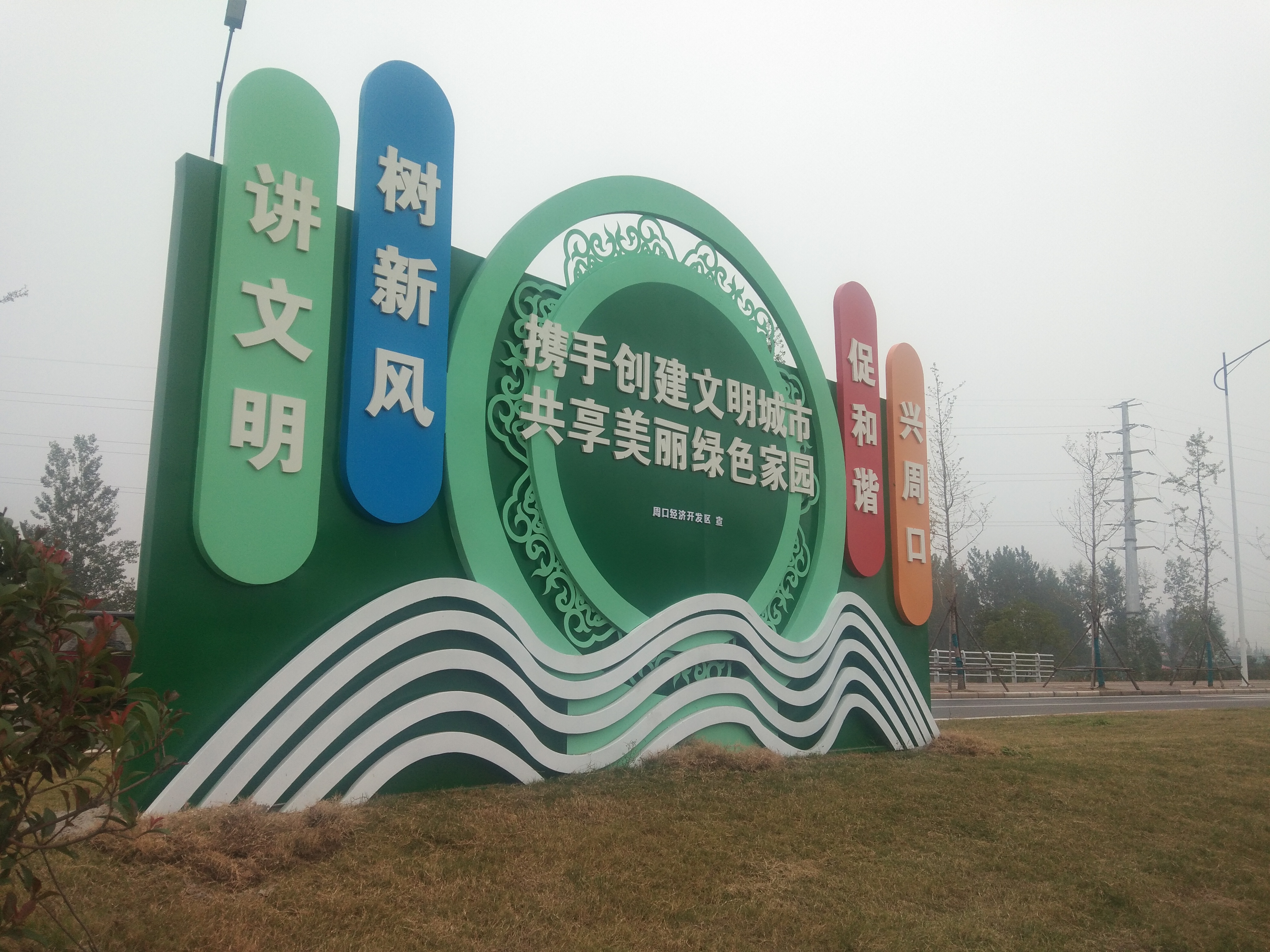 10月13日,記者看到一個(gè)寫(xiě)有“講文明、樹(shù)新風(fēng)、促和諧、興周口”的公益廣告牌出現(xiàn)在周口大道邊。如今,一個(gè)個(gè)造型精美的公益廣告牌出現(xiàn)在中心城區(qū),為“創(chuàng)文”營(yíng)造濃厚的宣傳氛圍的同時(shí),也扮靚了城市。②2張洪濤 攝