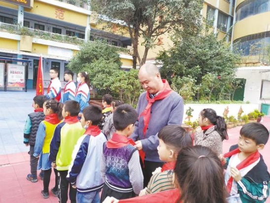 10月13日,是中國少年先鋒隊誕辰日,又稱少先隊建隊紀(jì)念日。周口市文昌小學(xué)堅持以立德樹人,把課堂教學(xué)與主題活動相結(jié)合,開展了多種多樣的“國旗下成長”主題教育活動。圖為在10月12日的升旗儀式上,六(4)中隊少先隊員向全校學(xué)生普及紅領(lǐng)巾知識。記者 王珂 通訊員 魏云紅 攝
