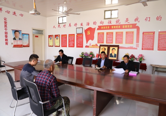 (接到鄭德民躺在病床上布置工作的電話,縣自然資源局駐土趙行政村第一書記王玉杰、土趙行政村主任邱成明心懷悲痛立即召開村干部會(huì)議落實(shí)。鄭德民的位置是空的。)