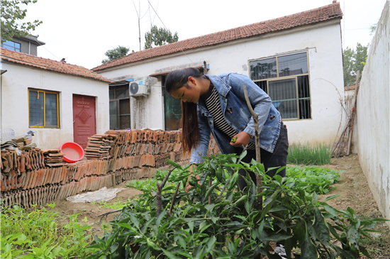 同是瓜趙村危房改造戶,19歲的趙明明正在院里灑水、摘菜,小院不大,東部菜園、西部通道,井井有條,油麥菜、菠菜、小青菜、辣椒、蔥、香菜、空心菜、梅豆角……五彩蔬菜給這個(gè)農(nóng)家小院平添了幾分溫馨和生機(jī)。