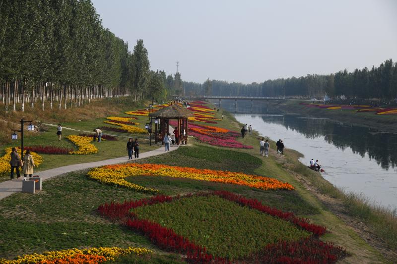 10月20日,市民在商水縣高標準農(nóng)田灌溉渠兩岸游玩。