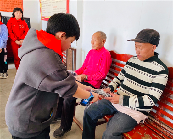 當日9時,學(xué)校各中隊隊員在校門口準時集合,在校領(lǐng)導(dǎo)和大隊輔導(dǎo)員的帶領(lǐng)下,來到鎮(zhèn)敬老院。在敬老院里,孩子們認認真真清掃落葉和垃圾,為老人們晾曬被褥、衣物,擦洗用具,陪老人們聊天,還為每位老人贈送了一雙“愛心棉手套”。老人們看著一張張青春陽光的笑臉和一雙雙忙碌不停的小手,心里充滿溫暖和感激。