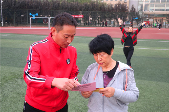 活動(dòng)中,志愿者們向晨練的群眾發(fā)放健康運(yùn)動(dòng)提示卡、防范電信詐騙、掃黑除惡、不動(dòng)產(chǎn)登記等方面的宣傳材料,免費(fèi)派發(fā)“愛(ài)心粥券”;細(xì)心講解老年人常見(jiàn)的十大心理、常見(jiàn)病的預(yù)防等強(qiáng)身健體保健常識(shí),引導(dǎo)群眾合法應(yīng)對(duì)“保健品大促銷”、“集資詐騙”等典型詐騙行為;倡導(dǎo)老年人多了解法律知識(shí),以提高識(shí)別詐騙、自我維權(quán)的能力。同時(shí),志愿者們主動(dòng)拾撿體育場(chǎng)內(nèi)的樹葉、雜物等,為晨練群眾創(chuàng)造干凈衛(wèi)生的健身環(huán)境,深受群眾喜愛(ài)和稱贊。