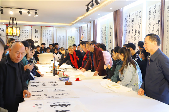 10月15日,重陽(yáng)節(jié)。中國(guó)書法之鄉(xiāng)鄲城縣書協(xié)主席巴云山和資深書法家張樹銀、杜長(zhǎng)青、崔傳明等人一道,在該縣八斗文化藝術(shù)中心舉行揮毫慶重陽(yáng)的義寫活動(dòng)。許多老藝術(shù)家和年輕學(xué)生歡聚一堂,過了一個(gè)別樣的重陽(yáng)節(jié)。