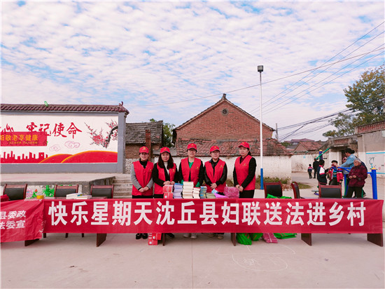 為助力鄉(xiāng)村振興,不斷提高廣大農(nóng)村留守婦女的法律意識(shí),切實(shí)解決她們生產(chǎn)生活中存在的法律難題,10月25日上午,沈丘縣婦聯(lián)借“快樂星期天公益行”主題活動(dòng)之機(jī),走進(jìn)北城辦事處蘇樓村居委,對(duì)《民法典》《婦女權(quán)益保障法》《反家庭暴力法》《未成年人保護(hù)法》等有關(guān)法律法規(guī)進(jìn)行宣傳,把法律服務(wù)送到群眾家門口。
