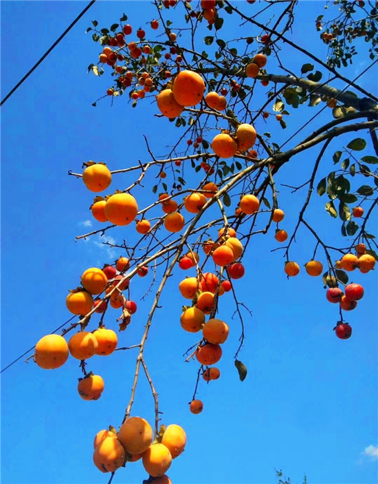 古詩云:“自古逢秋悲寂寥,我言秋日勝春朝?!敝芸诘那锶站褪侨绱?,火紅的柿子、多彩的鮮花,到處都是美不勝收的風景,不僅讓人感受到秋日豐收的喜悅,更有春日勃勃的生機。