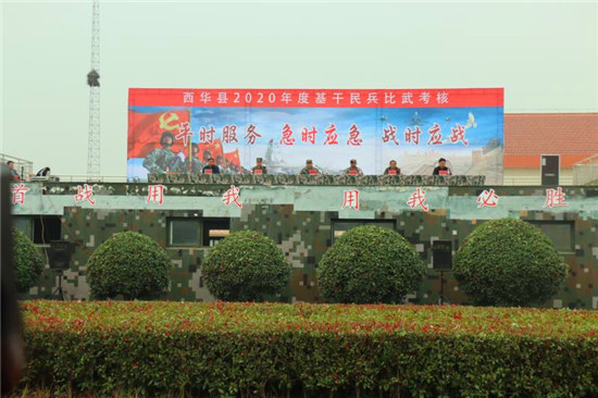 “秋風(fēng)吹,戰(zhàn)鼓擂,西華民兵怕過(guò)誰(shuí)?不怕!不怕!不怕!”10月27日上午8點(diǎn)30分,在周口市民兵訓(xùn)練基地訓(xùn)練場(chǎng),西華縣參加輪訓(xùn)備勤訓(xùn)練的近200名青年基干民兵整齊列隊(duì),鏗鏘激昂、聲若洪雷的呼喊聲氣貫長(zhǎng)虹,震撼人心,由此拉開(kāi)了該縣參訓(xùn)基干民兵比武考核的大幕。