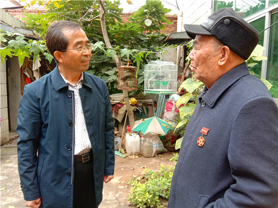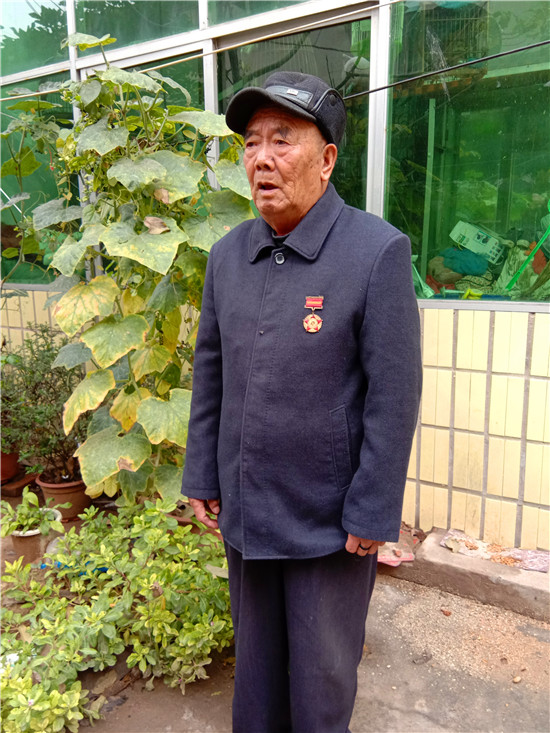 快到王景文家時(shí),記者與他取得了聯(lián)系,沒(méi)想到他竟到路口來(lái)迎記者,看到他硬朗的身板和健康的身體,聽(tīng)他說(shuō)話聲音洪亮、底氣十足,記者還是很欣慰的,畢竟經(jīng)歷了70年的風(fēng)雨洗禮,還能行走自如、聲如洪鐘,的確是寶刀不老。被他迎進(jìn)家,其老伴滿頭銀發(fā),喜瞇瞇地讓記者進(jìn)屋,王老先生去里屋找出了一枚抗美援朝紀(jì)念章,并說(shuō)抗美援朝和平紀(jì)念章等物品都放丟了,找不到了,有些遺憾。記者就開(kāi)門見(jiàn)山地說(shuō)要聽(tīng)他講講參加抗美援朝的故事,他不好意思地笑了:“講不好,年齡大了,記性不好,有好多事都記不清了……”當(dāng)問(wèn)起他老家是哪里時(shí),王老先生還是打開(kāi)了話匣子。1934年,他出生在淮陽(yáng)縣劉振屯鄉(xiāng)耿樓大隊(duì)李樓村,由于家境貧寒,他從小就跟隨家人一路逃荒要飯來(lái)到了扶溝,但日子還是艱難,為了能活命,父母無(wú)奈把他送給了扶溝縣城一戶人家,從此他就成了這戶人家的孩子,并于1951年5月結(jié)婚??山Y(jié)婚沒(méi)幾個(gè)月,縣里就開(kāi)始征兵了。當(dāng)兵離家,要丟下妻子,更何況妻子已有孕在身,他真舍不得;保家衛(wèi)國(guó),是義務(wù)是責(zé)任是擔(dān)當(dāng),他責(zé)無(wú)旁貸。家與國(guó),他毅然選擇去當(dāng)兵。與新婚燕爾的妻子依依惜別,他踏上了行軍的征程。那時(shí)可沒(méi)有車接送,去往目的地,全靠?jī)蓷l腿,行軍與訓(xùn)練的苦與累難以想象。問(wèn)他不害怕當(dāng)兵打仗嗎?他回答:“不怕!”語(yǔ)氣堅(jiān)定而有力。生活的磨難讓他對(duì)安穩(wěn)的生活有一種渴望,他明白戰(zhàn)爭(zhēng)會(huì)讓國(guó)家陷入混亂不堪的局面,老百姓的生活會(huì)更加艱難,為了祖國(guó)的和平安寧和兄弟姐妹的幸福,他愿意去當(dāng)兵打仗。保家衛(wèi)國(guó)的種子早已種在了他的心里。