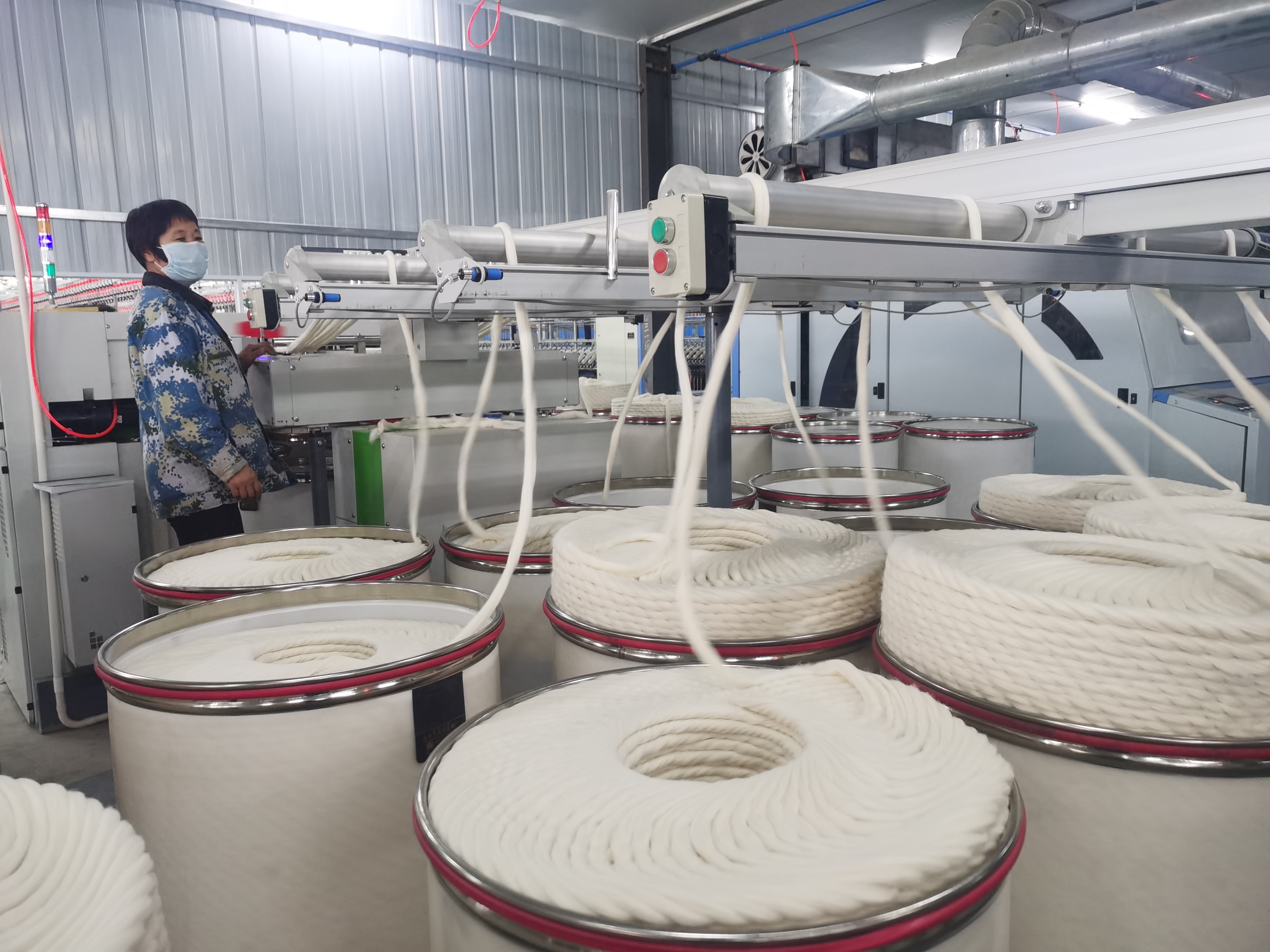11月9日,扶溝縣博發(fā)紡織有限公司一期2萬紗錠生產(chǎn)線進(jìn)口設(shè)備安裝完畢,正在試車。
