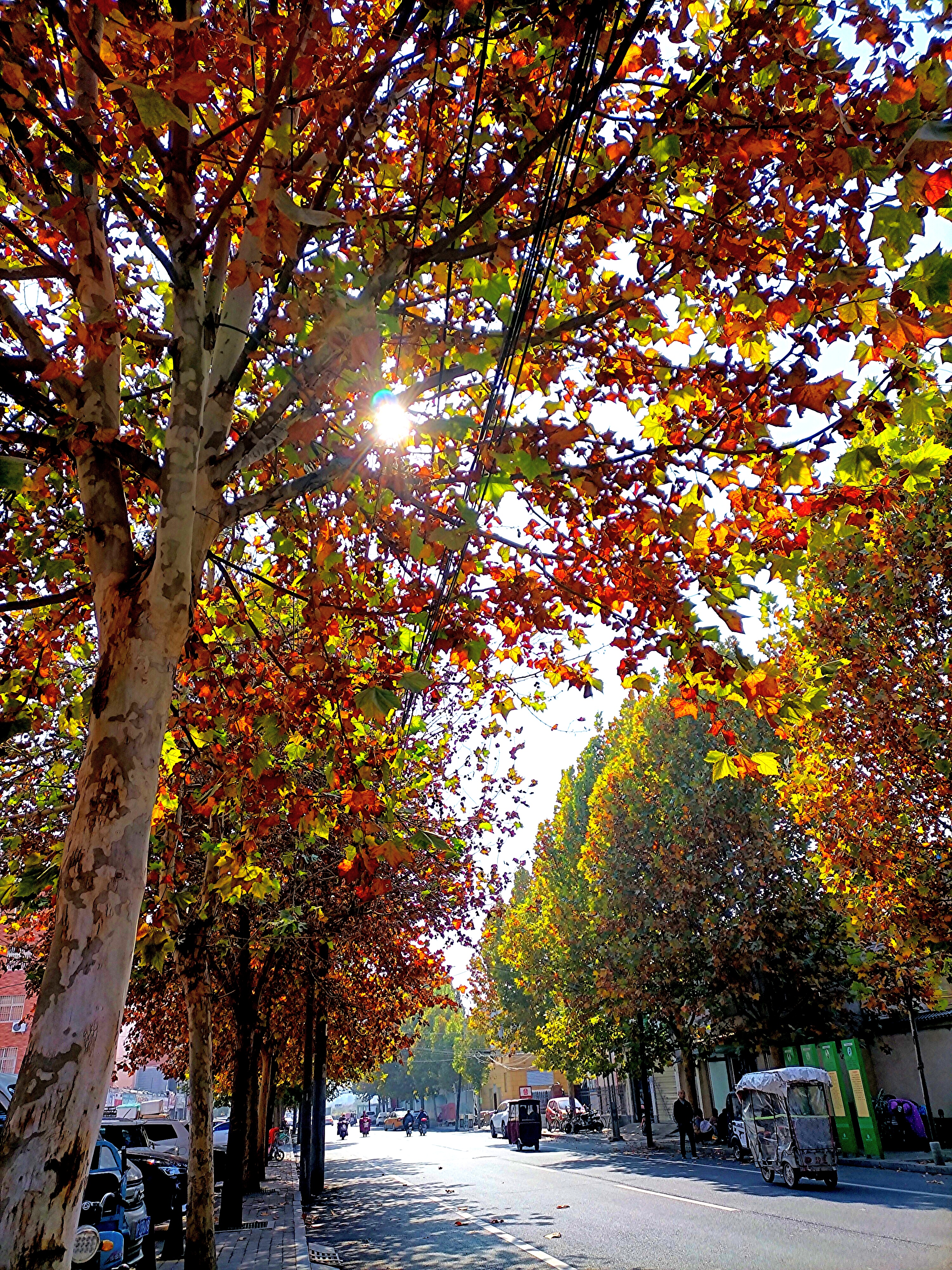 文昌大道路邊在陽(yáng)光的映照下格外美麗的梧桐樹(shù)