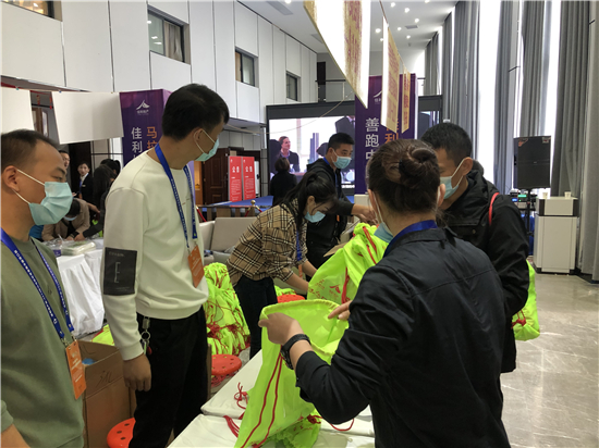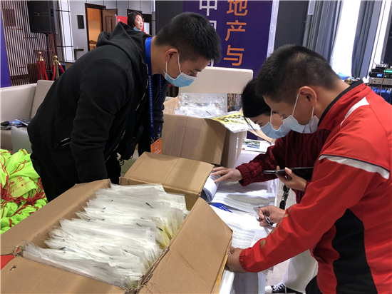 11月12日上午,記者在位于八一大道與文昌大道交叉口的佳利地產(chǎn)營銷中心門口看到,今年由于疫情管控的需要,參賽選手領(lǐng)取裝備前需要先展示自己的健康碼,并配合醫(yī)護(hù)人員測(cè)量體溫,進(jìn)入現(xiàn)場(chǎng)還需戴口罩。在一樓活動(dòng)大廳,來自周口馬拉松協(xié)會(huì)的志愿者們先為選手確認(rèn)身份信息,再根據(jù)選手的身材、體型為其發(fā)放含有不同型號(hào)運(yùn)動(dòng)衣的背包。最終,每個(gè)參賽選手都會(huì)領(lǐng)到一個(gè)熒光綠色的小背包,里面裝有號(hào)碼布、參賽長袖T恤、存衣包、手套、一次性風(fēng)雨衣和一本官方手冊(cè)等。