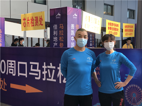 活動(dòng)現(xiàn)場(chǎng)前來領(lǐng)取賽前裝備的人源源不斷,有的是朋友結(jié)伴而來,有的趁工作間隙而來,還有的帶著孩子前來,十分熱鬧。王勝利先生今年是第四次參加周口馬拉松賽了,他說:“2017年我跑了5小時(shí)30分,2018年是4小時(shí)28分,2019年跑了4小時(shí)17分,通過這幾年堅(jiān)持不懈地鍛煉,今年我想爭取跑到4個(gè)小時(shí)以內(nèi),不跟別人比,主要是不斷地自我超越!”今年的周口馬拉松賽還吸引了許多“都市麗人”參加,劉女士就是其中一員,“我今年36歲了,平時(shí)就非常喜愛健身、長跑,今年是我第一次報(bào)名參加馬拉松賽,希望能夠挑戰(zhàn)自己?!彼嬖V記者。