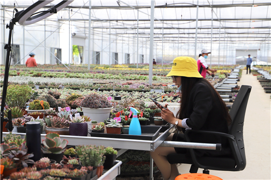 “雙11”剛過,河南“多肉之王”、省電商扶貧帶頭人張國健正帶領著團隊在鄲城縣農(nóng)高區(qū)多肉基地為2300多單精準發(fā)貨。今年38歲的張國健開過挖掘機、當過銷售員,2014年在南方涉足電商時摔了大跟頭,賠了70多萬元。回到老家白馬鎮(zhèn)辦了多肉種植基地之后,鄲城縣商務局等部門與其對接培訓了網(wǎng)紅、推薦了人才、在農(nóng)高區(qū)設立2650平方米的大棚,張國健邁上了快車道,年銷售額在3000萬元以上。今年又增加9個大棚,包括錢店鎮(zhèn)、石槽鎮(zhèn)兩個供貨代養(yǎng)的扶貧大棚,幫扶30多戶貧困戶脫貧,帶動電商從業(yè)人員160余人。