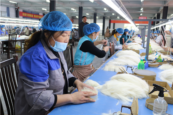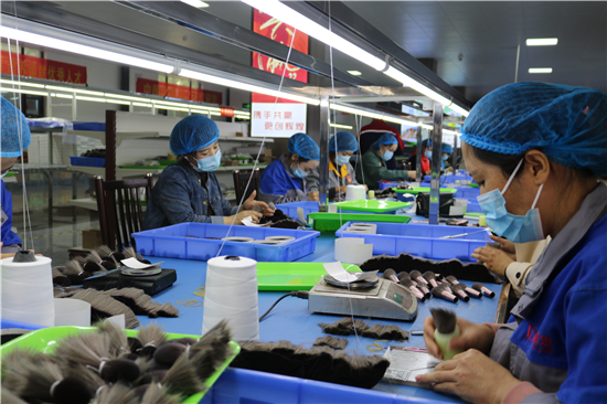 “從簡單的梳羊毛到如今做高檔化妝刷,從產(chǎn)業(yè)鏈的末端做到頂端,從養(yǎng)家糊口到賺外匯,經(jīng)過多年的滾動(dòng)發(fā)展,鹿邑縣硬是把尾毛化妝刷這種‘小手藝’做成了助推縣域經(jīng)濟(jì)高質(zhì)量發(fā)展的‘大產(chǎn)業(yè)’。目前,全縣大大小小的化妝刷企業(yè)達(dá)1000多家,尾毛出口總量占全國化妝刷原毛出口的80%,年產(chǎn)羊毛3000多噸、尼龍毛9000多噸,生產(chǎn)各類化妝刷1.5億套,產(chǎn)品遠(yuǎn)銷20多個(gè)國家和地區(qū)。另外,作為尾毛的衍生產(chǎn)業(yè),羊毛衫加工產(chǎn)業(yè)近幾年的異軍突起,更是激活了全縣創(chuàng)業(yè)就業(yè)的一池春水。統(tǒng)計(jì)數(shù)字顯示,近幾年,鹿邑縣持續(xù)圍繞尾毛化妝刷特色產(chǎn)業(yè),強(qiáng)鏈延鏈補(bǔ)鏈,開展精準(zhǔn)招商,化妝刷及配套企業(yè)已發(fā)展到135家,實(shí)現(xiàn)產(chǎn)值50多億元,出口創(chuàng)匯21億;羊毛衫紡織企業(yè)發(fā)展到54家,有電腦織機(jī)6500臺(tái),年產(chǎn)各類針織服裝6000萬件,使鹿邑成為河南省最大的化妝刷生產(chǎn)基地、羊毛衫加工基地,帶動(dòng)全縣7.5萬人創(chuàng)業(yè)就業(yè)。